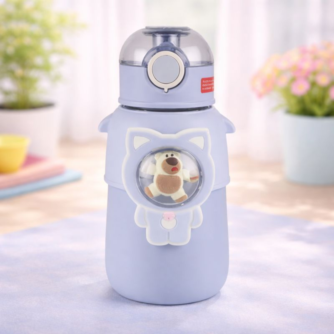 Cute Bear-Themed Kids Water Bottle with Straw & Safety Lock