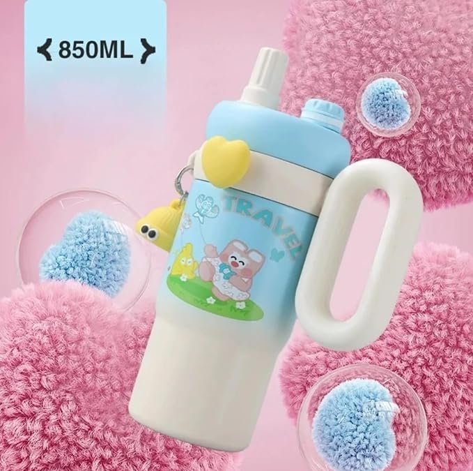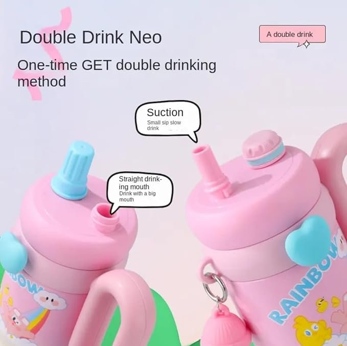KidKart India Hot & Cold Straw Sipper Water Bottle For Toddlers Kids, And Adults With Strap.