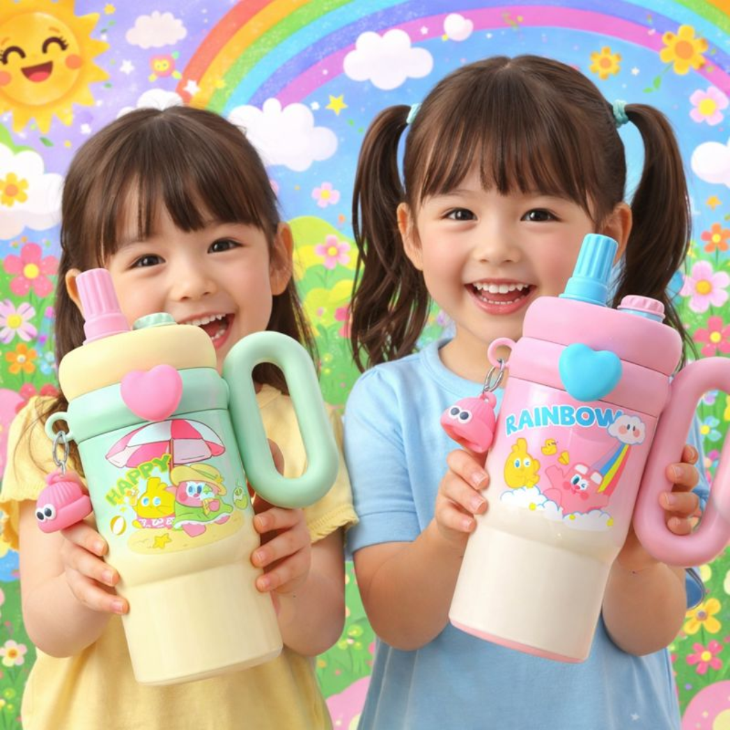 Kidkart India Kids Water Bottle with Handle – Cute Design(BPA-Free, Leak-Proof)
