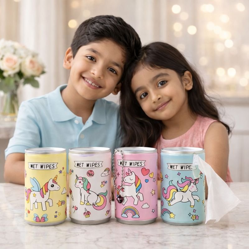 KidKart India Magic Mini Wet Wipes – Portable Travel Friendly Canister with Refreshing Scent, Alcohol Free & Skin-Friendly – Multipurpose Ultra-Soft & Moist Wipes for Hands & Face – 60 Wipes Per Can