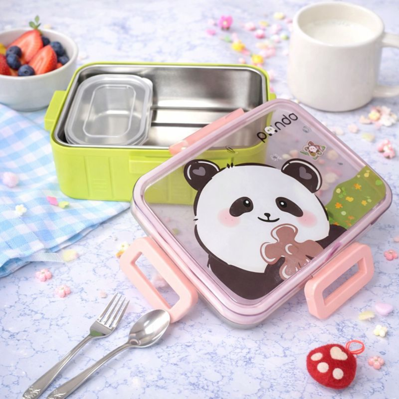KidKart India Stupefying Panda Cartoon Printed Stainless Steel Container Lunch Box 1 Containers Stainless Steel School Lunch Box