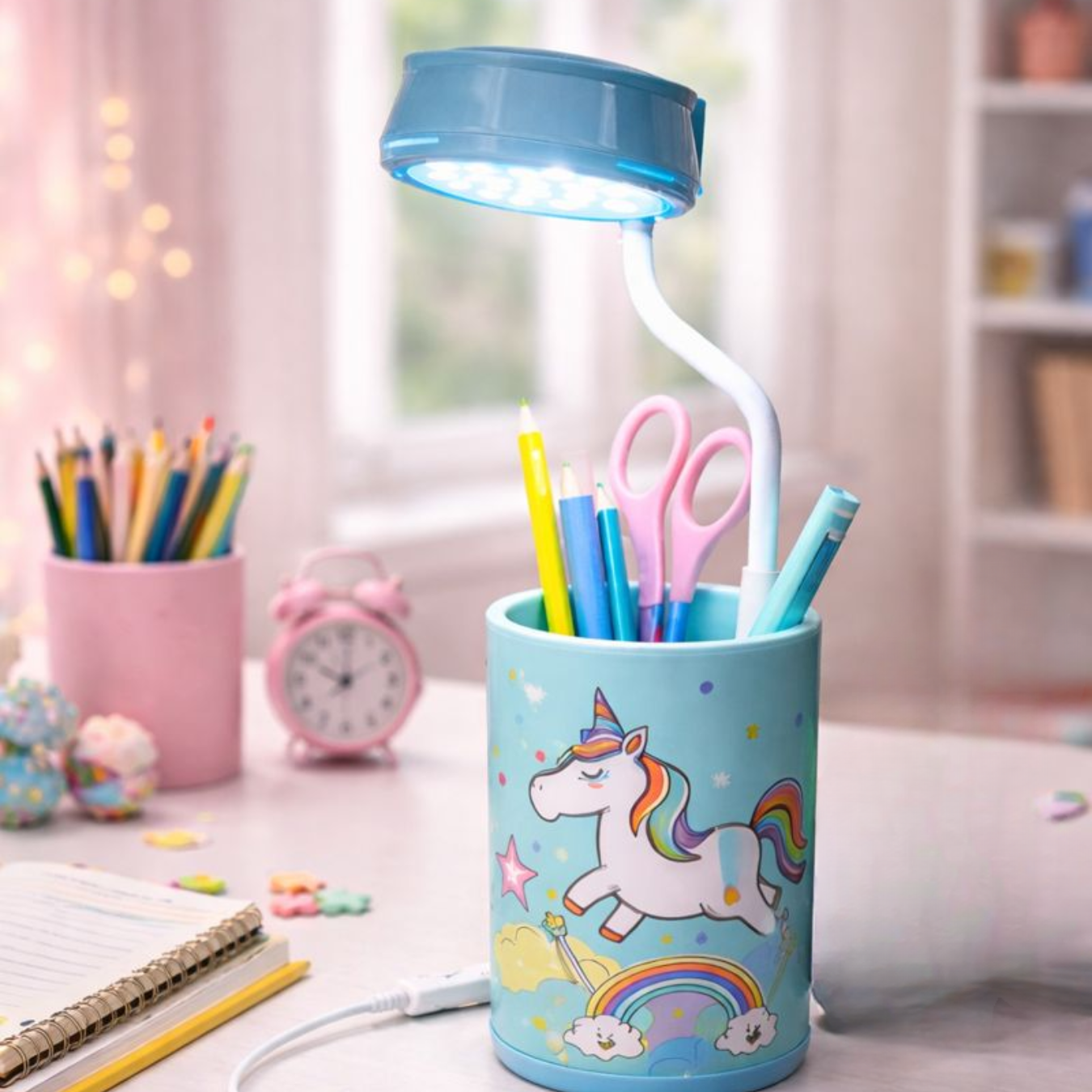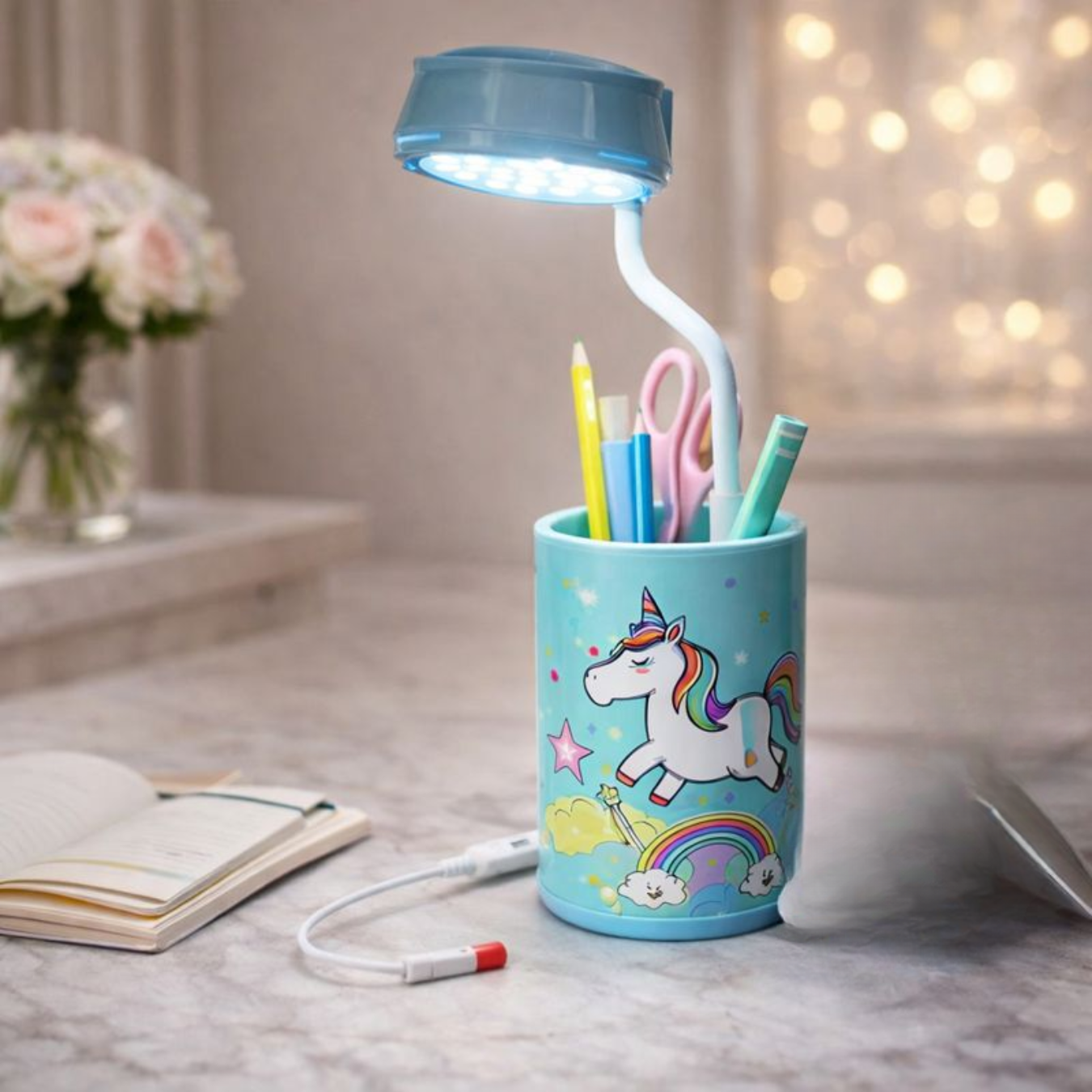 KidKart India Unicorn-Themed 2-in-1 LED Desk Lamp with Pen Holder for Kids | Cute Study Table Lamp